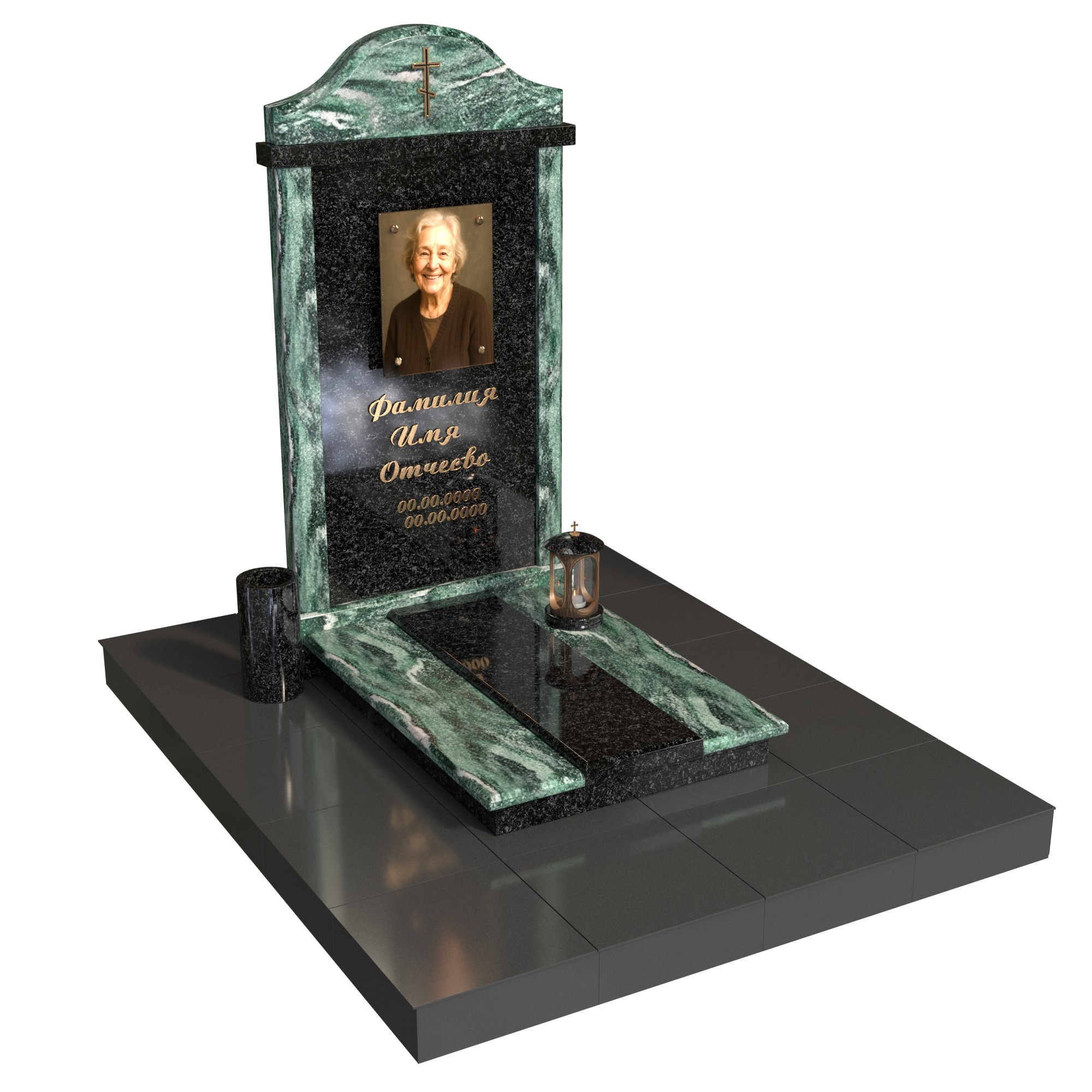 Парный памятник «Столп семьи» — элегантный семейный комплекс для двух захоронений. Две строгие стелы объединены центральной колонной с крестом, символизирующей опору и единство. В каждой стеле — фотопортрет на стекле и индивидуальная гравировка. Фигурное основание и аккуратная плита придают комплексу завершённый, ухоженный вид; предусмотрено место под лампаду и аксессуары.